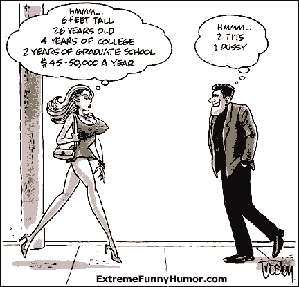 Niciun barbat nu a simtit o atractie pentru o femeie, pentru ca are o personalitate speciala, atunci cand a vazut-o pentru prima data. Suntem animale, ne-a placut tipa pentru ca arata bine, chiar daca nu stia sa vorbeasaca cooerent. Ne-au atras tzatzele ei, curul bombat, nicidecum faptul ca poate stia citate din Kant. Binenteles ca asta e un gest misogin, sa-ti placa o tipa doar dupa aspect si feministele ne mai sar in cap din cand in cand. Dar doar cand sunt situatii de genul asta. Pe de alta parte, la orice nunta la care ati mers sau urmeaza sa mergeti, NIMENI dar ABSOLUT nu o sa observe cum e imbracat ginerele (decat daca vine in boxeri si papion, si nici atunci nu sunt foarte sigur ca o sa vada cineva)!!! In schimb, mireasa....pai stai asa, ca e cea mai importanta zi din viata ei. Cu 3,6,9,12 luni inainte de nunta cauta in fiecare magazin de rochii, modelul prfect, probeaza, incearca, face pe comanda, cheltuie 4000 cel putin pe rochie. In timpul asta ginerele ce face? Ca orice barbat...sta. Si in ultima saptamana, inainte de nunta, se duce in banie, sucpi sau mai nou in mall, punemana pe primul costum pe care il vede si gata hainele de nunta. Simplu, eficient, fara bataie de cap. Oricum nimeni nu o sa-i spuna vreodata: Wow!!! ce mi-a placut costumul tau la nunta!